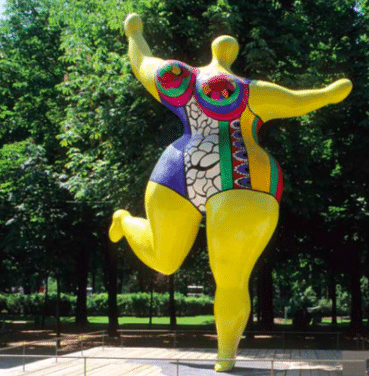 « Niki de Saint Phalle elle-même explique que son « art […] est féminin, notamment parce qu’il privilégie la ligne courbe et bannit les angles droits. Tout au long des années 1970 et 1980, Saint Phalle recrée différentes versions des Nanas, souvent commandées pour des espaces publics en Europe. » (Source « Art et science – janvier 2019).